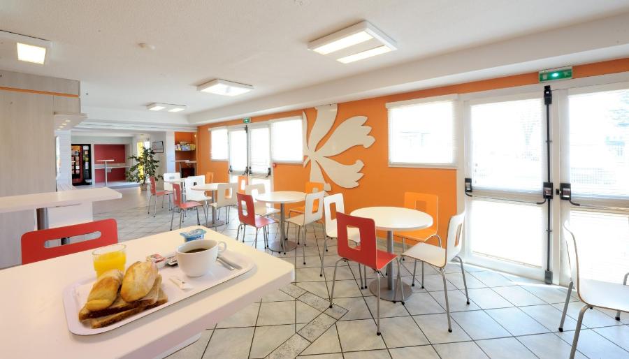 Per i vostri pasti, troverete nelle vicinanze due ristoranti: il Buffalo Grill a 1 chilometro e il ristorante stradale Ariane a soli 200 metri. La colazione continentale è servita in una sala luminosa e accogliente, con 42 posti a sedere. La decorazione moderna e colorata dell'hotel, con tonalità vivaci di arancione, fucsia, bianco e grigio, contribuisce a un'atmosfera piacevole e accogliente.